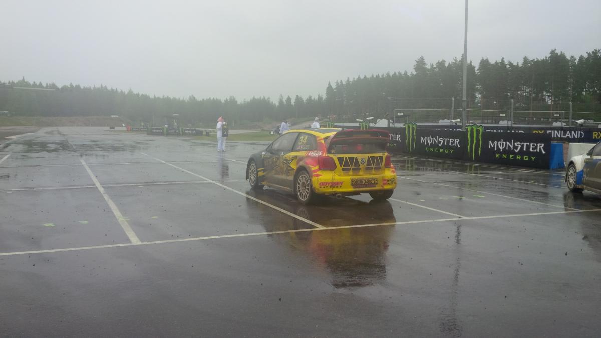 Byla tedy sobota chvíli po půlnoci, kdy jsme vlakem do Kouvoly dorazili z Helsinek, kam jsme pro změnu dojeli spolujízdou přes jízdomat (jaká náhoda, že někdo jel zrovna v ideální čas trasu Praha – Helsinky!). Říkali jsme si, že k trati to bude už jenom kousek a tam někde zakempíme přes noc, ale kdybychom se podívali předem na přesnou vzdálenost na mapách a připočítali naše těžké batohy plné vší potřebné výbavy pro přežití v přírodě, rychle bychom zjistili, že dříve než za 2 hodiny chůze tam nebudeme. Takhle v noci už nás přímo k závodišti nechtěli pustit a tak jsme rozdělali stan v nedalekém areálu připomínajícím kamenolom. Ráno jsem se pak kolem sedmé hlásil na ředitelství. Dostal jsem tričko, čepici, kombinézu a instrukce, jak probíhá řazení aut na startu – nejdříve nám řeknou, kdo na naše místo přijede, pak se postavit s číslem na příslušný slot, až přijede pilot, pak zamávat, že tam je jeho místo, řádně ho umístit na lajně a nakonec, až se pískne, tak očistit senzor předčasného startu a odejít po levé straně auta a zakrýt si uši. To neznělo složitě, to by šlo zvládnout. Jelikož tam Lucka byla se mnou, hned přišli s tím, jestli se nechce taky přidat. „Tak proč ne?“ zněla odpověď. Víkend jsme tak strávili přímo v centru všeho dění, dokonce jsme si i „zahráli“ v přímém přenosu (a taky v neděli pěkně zmokli). Musím říct, že je to skutečně dobrý pocit stát před jezdci jako Petter Solberg nebo Timmy Hansen a být v podstatě součást jejich závodu!