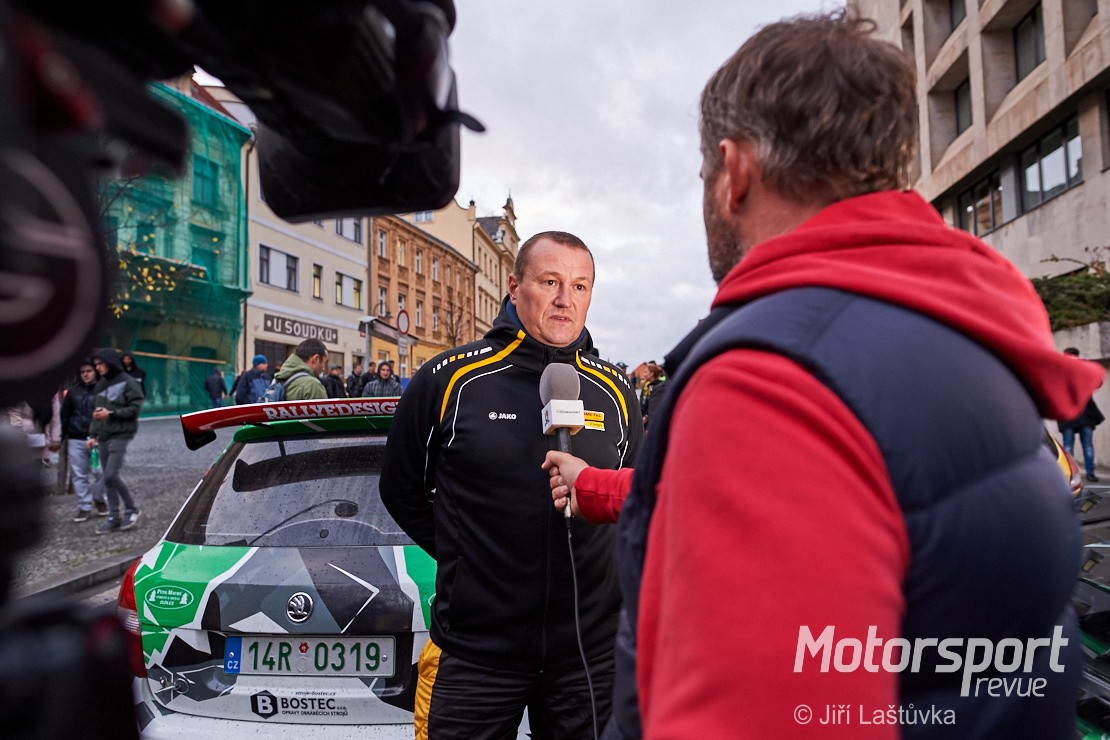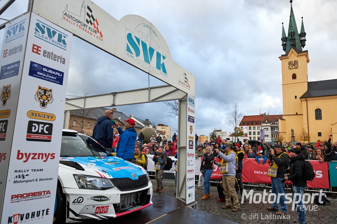 Slavnostní zahájení soutěže proběhlo na náměstí T. G. Masaryka v Příbrami. I přes nepřízeň počasí věrní fandové rally přišli podpořit své favority. Světla rychle ubývá. Stíhám vyfotit několik aut, několik rozhovorů jezdců pro TV a konec. Za tmy se odjíždím ubytovat. Sedím v pokoji. Nefouká, je teplo a hrnek teplého čaje přede mnou. Pohoda. Ještě jednou si procházím zítřejší plán focení. Snažím se hypnotizovat předpověď počasí na netu, ale nějak se mi to nedaří. Raději jdu spát.