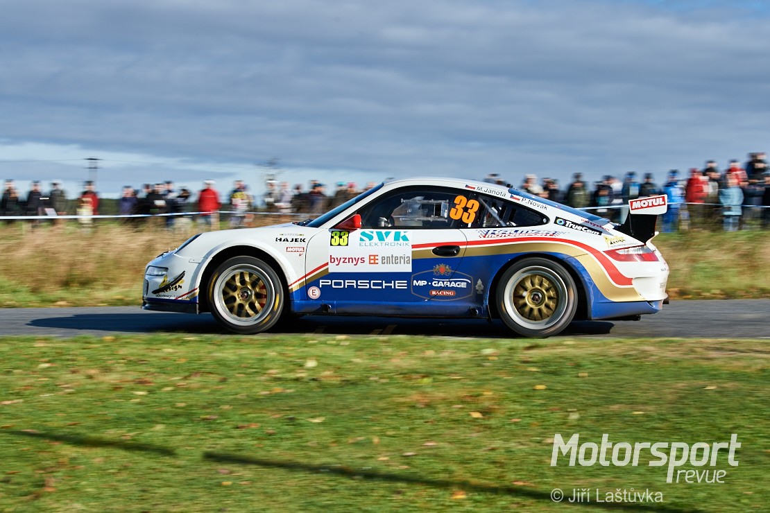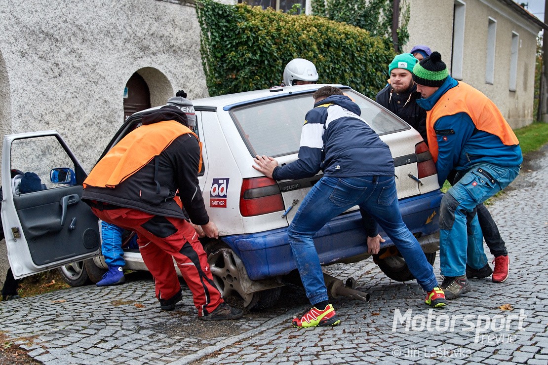 Přejezd byl v pohodě. Hvožďany vpravo, Březí vlevo. Dojíždím téměř k pásce. Lidí pomálu, prší a fouká studený vítr. Obhlížím vychvalovanou „kosu“, ale nic extra nevidím. Třeba se mýlím. Přijíždí první soutěžák a vidím, že opravdu žádná velká akce. Zklamán vymýšlím změnu plánu. Přejedu na start do Hvožďan, je to pět kilometrů a fotky ze startu ještě nemám. Rozhodnuto. Jedu. Na startu v Hvožďanech panuje pohodová nálada. To nebývá zvykem. Jak by ne. Rychlostní zkouška je zrušena. Informuje mne paní u časomíry. Jede se volný průjezd vozů. Důvod? Opět olej na trati! Promrzlý otáčím auto a nabírám směr penzion. Konečně teplo. Teplý čaj. Teplá sprcha. Teplá postel.