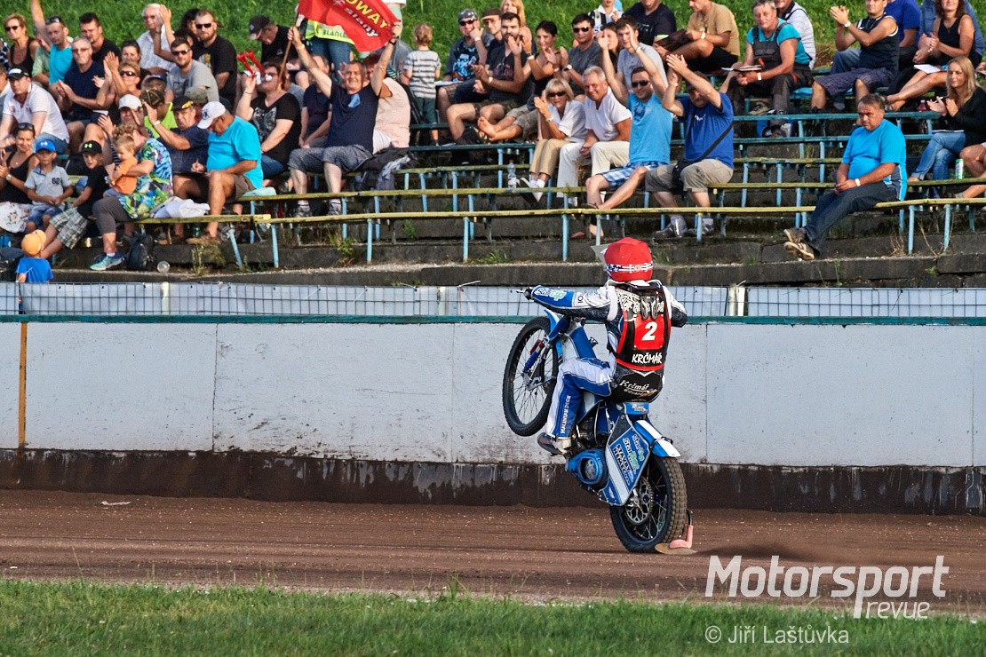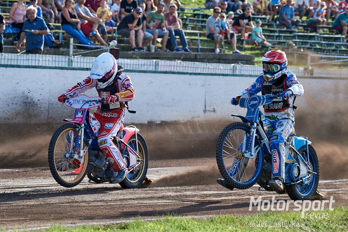 Pořadí v tabulce po pátém kole korespondovalo s děním na dráze stadionu ve Slaném. O celkovém vítězství jezdců AK Markéta Praha v VI. kole mezinárodního mistrovství ČR extraligy družstev rozhodla větší výkonnostní vyrovnanost týmu. Co bylo platné pardubickému družstvu, že ve svém středu mělo nejlepšího současného plochodrážního jezdce Václava Milíka, když mu již další borci nesekundovali, a na bodové zisky byl sám. Na lepší než druhé místo to nestačilo. I když i o to museli bojovat do poslední rozjížďky s domácí ekipou, aby ji uhájili o dva body. I domácím chyběl větší počet lépe bodujících jezdců. Eduard Krčmáč a polský host Jakub Jamrog na vše nestačili a ostatní bodově více méně paběrkovali. Ze slovenské Žarnovice přejel do Slaného velmi mladý tým, který i přes sympatický, bojovný výkon na ostatní jezdce zatím neměl.