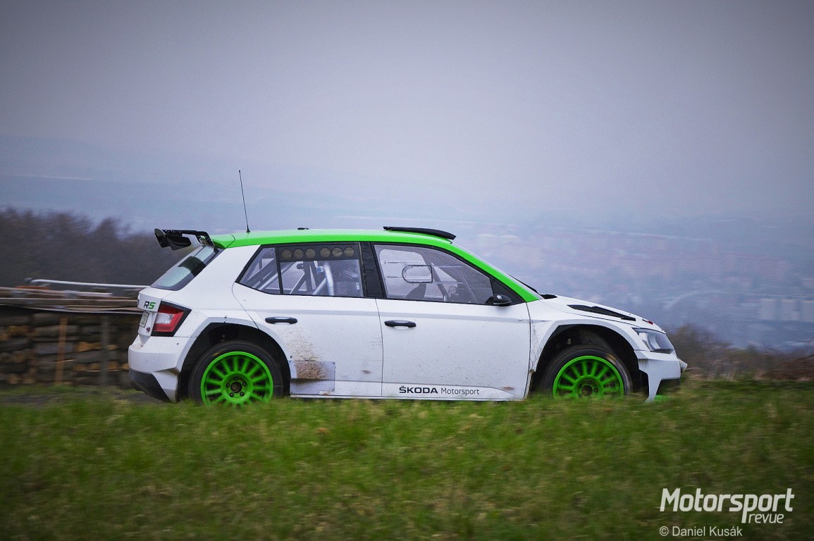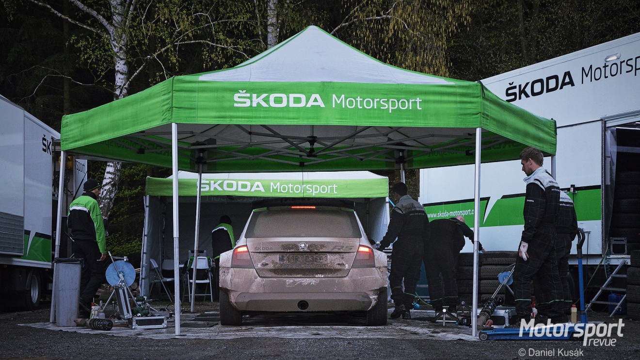 Sedmého a osmého dubna si tovární tým Škoda Motorsport vybral pro svůj test v obci Žlutava na Zlínsku. Ve čtvrtek se za volant Škody Fabie R5 posadil dravý seveřan Pontus Tidemand, kterému přálo počasí a diváci byli svědky atraktivní jízdy na limitu. V pátek „erpětku“ pilotoval Jan Kopecký a tomu již povětrnostní podmínky nebyly tolik nakloněny. Chladno, od rána zamračená obloha, ze které se postupem času začal snášet déšť různé intenzity… Ani rozmary počasí však neodradily spoustu fanoušků, kteří se přišli podívat, jak se Jan Kopecký společně s Pavlem Dreslerem perou s nástrahami trati. Rušno však bylo i v servisním zázemí, které bylo situováno přímo v areálu žlutavského fotbalového hřiště, kde byl takřka permanentně hlouček přihlížejících okolo stanu, pod kterým stála Škoda Fabia R5.