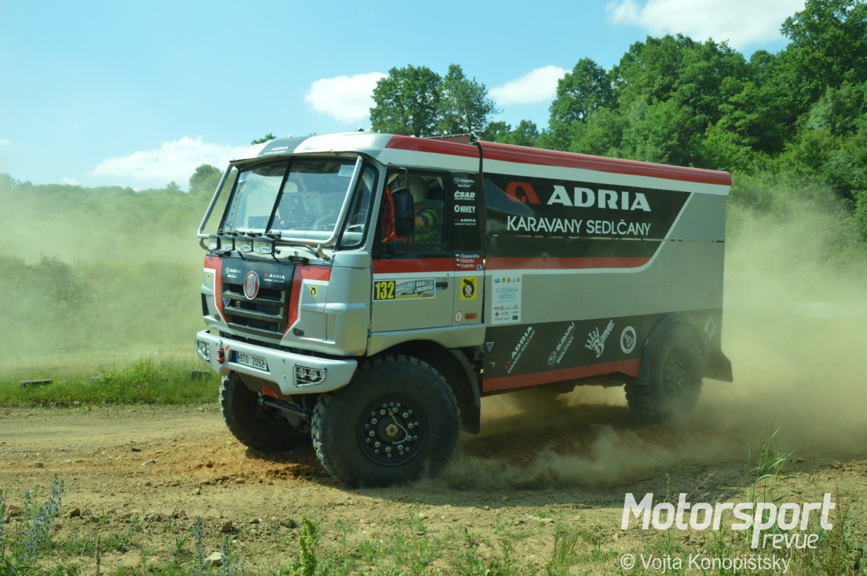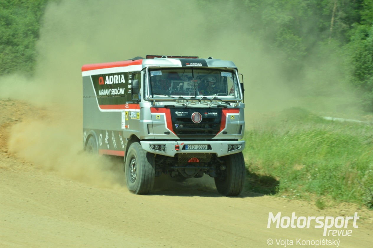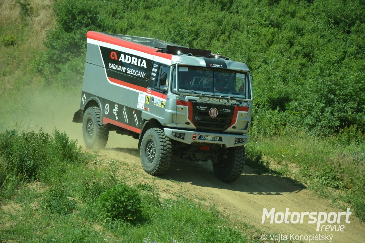 Sedlčanská kotlina je oblíbeným testovacím prostorem pro auta i motorky všeho druhu. Občas se objeví Macíkovi s některým Liazem, a teď už i Filip Škrobánek s Tatrou. Chystá ji na jihoamerický Dakar, nebo na Africa Eco Race? No, prý předně na závody do Maroka…